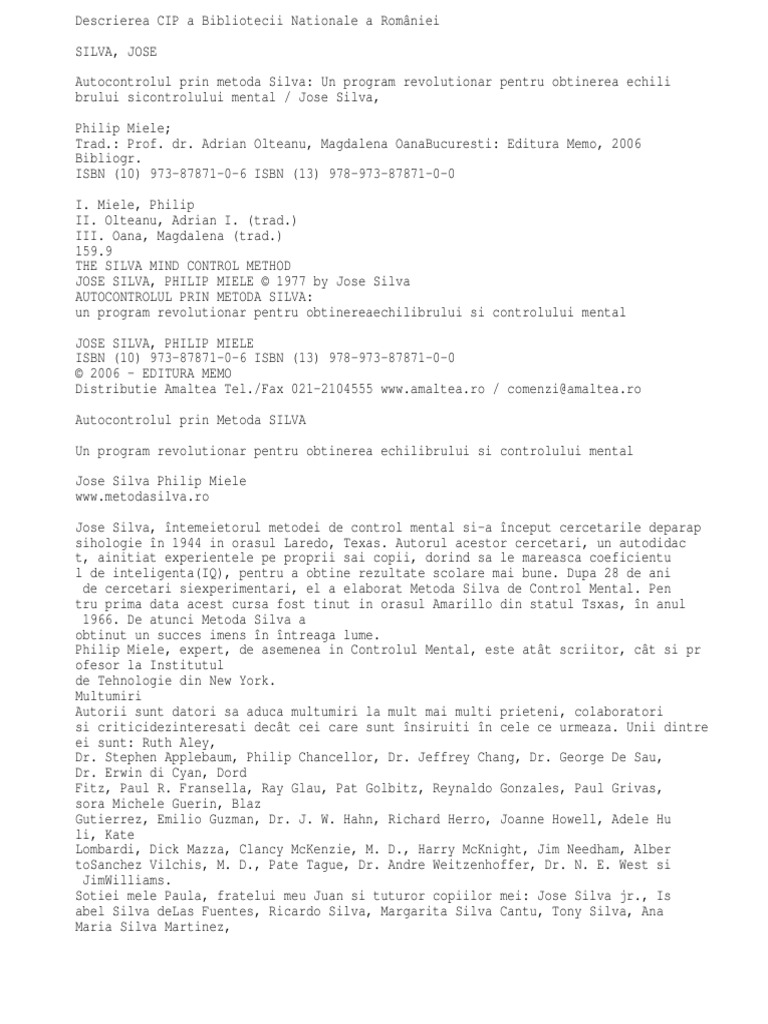 Doc Jose Silva Autocontrolul Prin Metoda Silva Diaconu Maria Academia Edu