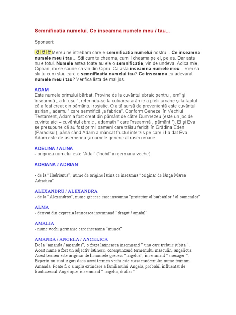 Ce Inseamna Numele Meu