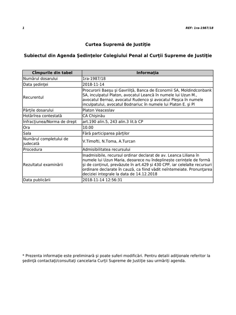 Agora Doc Completul De Judecători și Data Cand Csj Va Decide Soarta Lui Veaceslav Platon