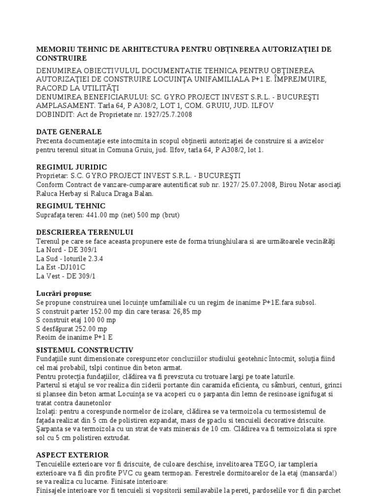 Doc Memoriu Tehnic Necesar Emiterii Acordului De Mediu Badea Mioara Academia Edu